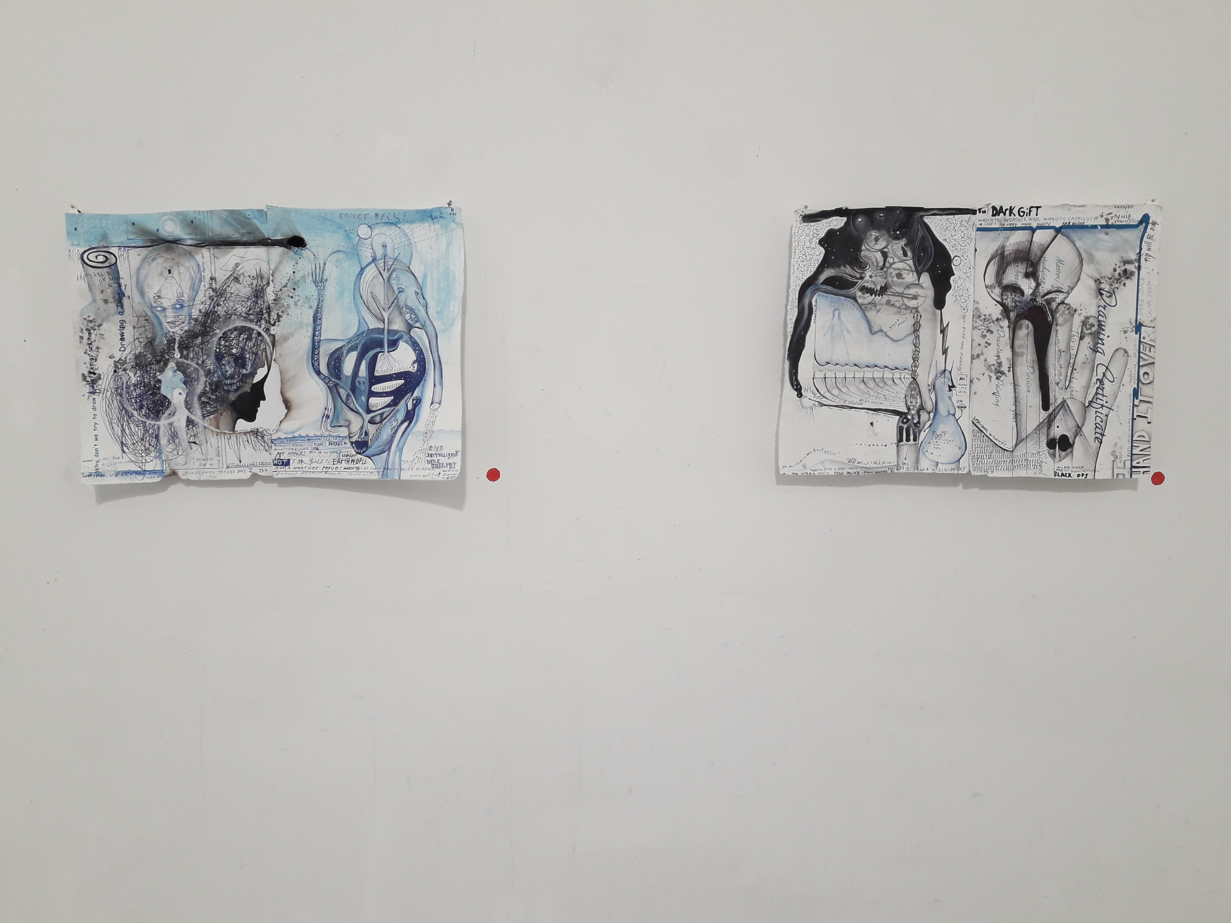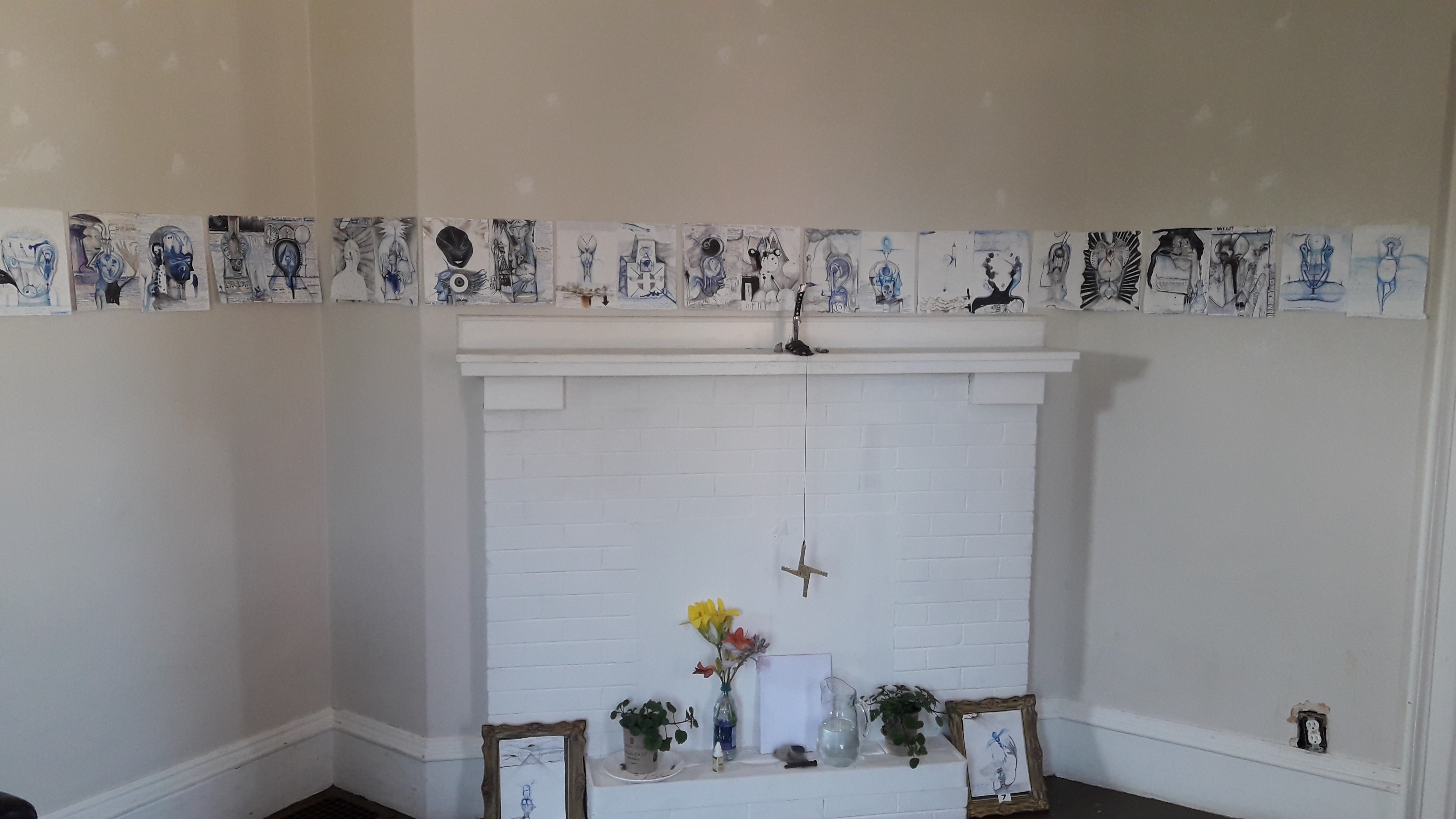 I thrown up a wee studio installation of drawing minitures i done on way.
