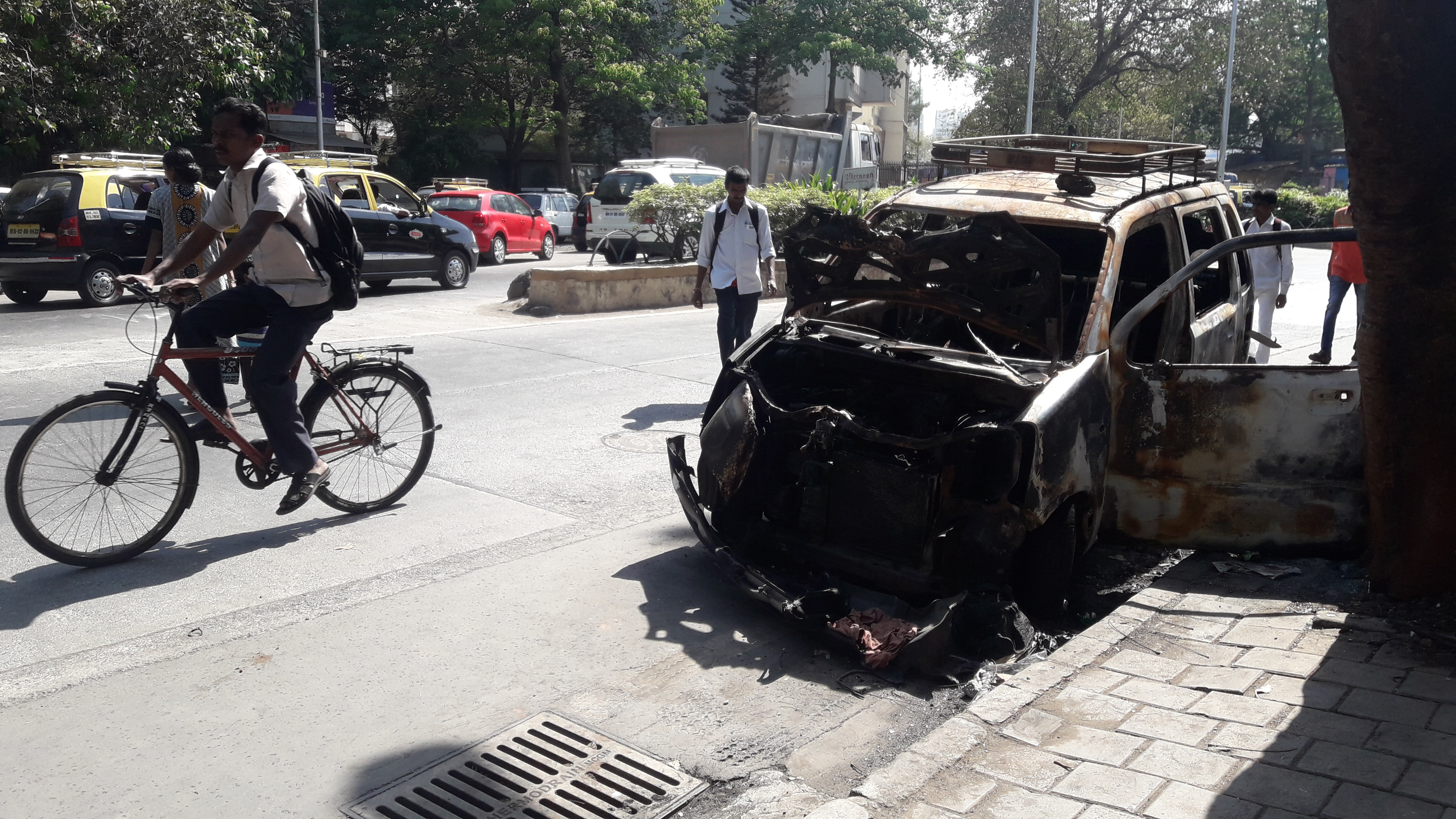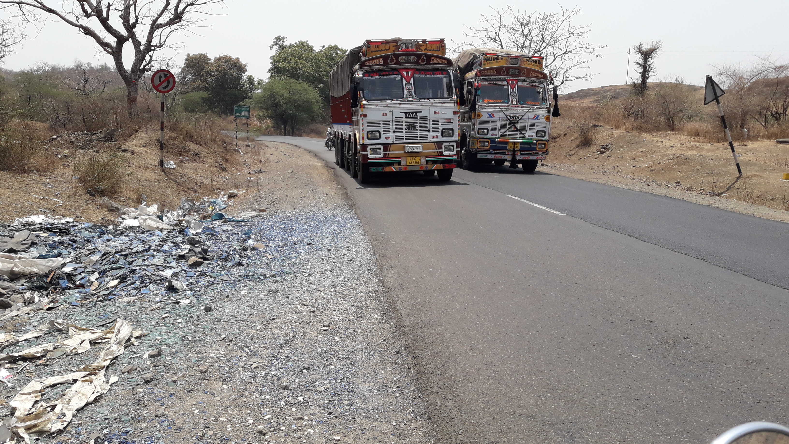 Left my bike way out of mumbai..on moterway by pass spagghetti hell road dark night truck monster ghetto town